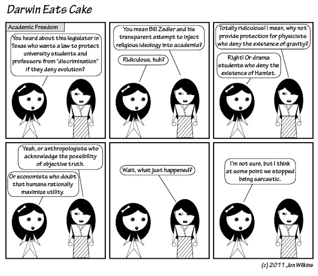 So, last week I wrote about this Texas state representative who has proposed an anti-evolution bill. I’ve revisited the topic for the new episode of Darwin Eats Cake.