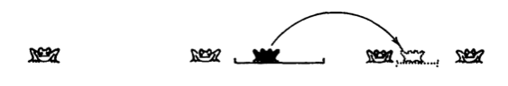 This frog wants to position itself between the two frogs on the right. That way, when the sea snake comes up, it will eat one of the frogs at the edge, and the one in the middle will be safe.